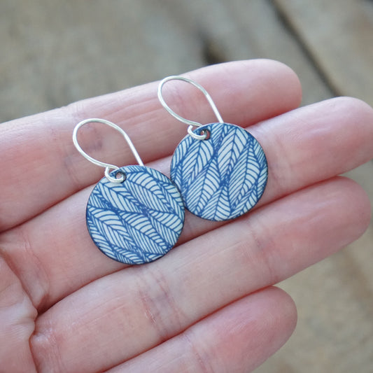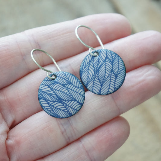 Blue Feather Accents on Seafoam Green Enamel Disc Earrings