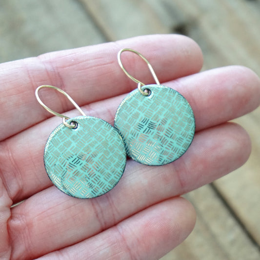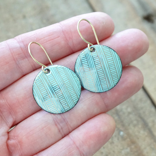 Gold Accents on Seafoam Green Enamel Disc Earrings