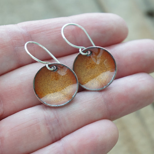 Bronze Enamel Disc Earrings