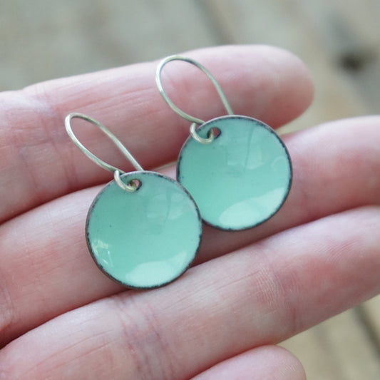 Seafoam Green Enamel Disc Earrings