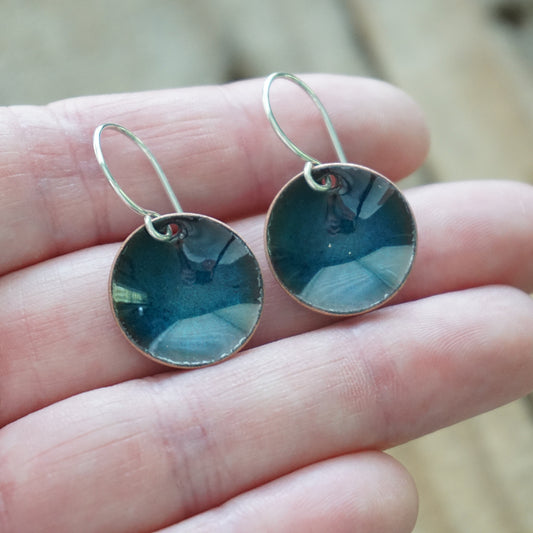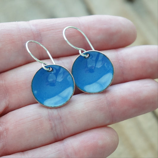 Teal Blue Enamel Disc Earrings
