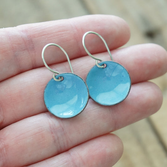 Light Blue Enamel Disc Earrings