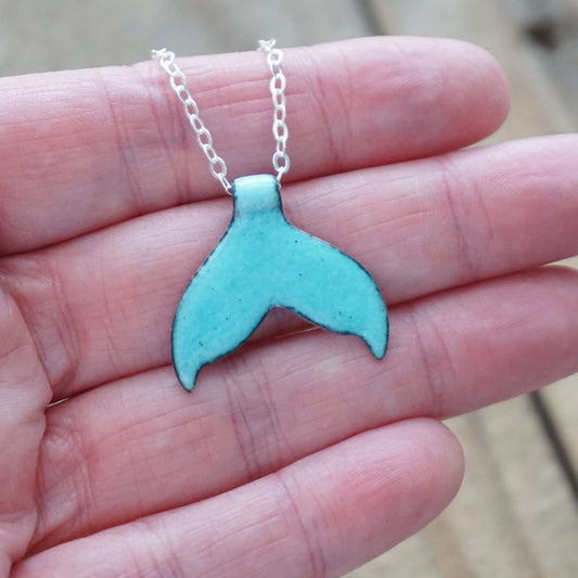 Aqua Blue Enamel Whale/Mermaid Tail Necklace