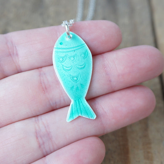 Light Seafoam Green and Blue Enamel Fish Necklace