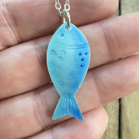 Aqua Blue and Cobalt Blue Enamel Fish Necklace