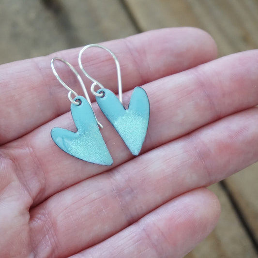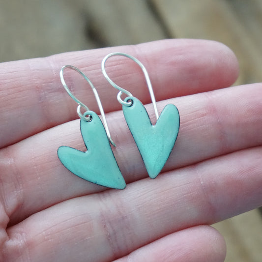 Seafoam Green Enamel Heart Earrings