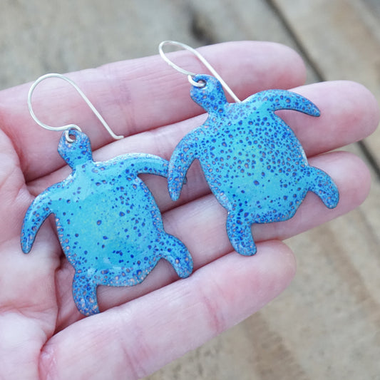 Blue Enamel Turtle Statement Earrings