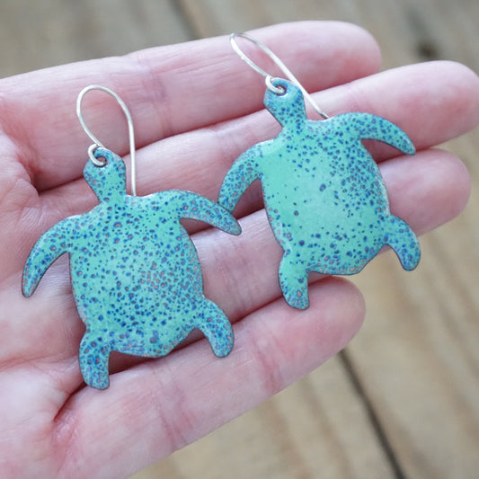 Green and Blue Enamel Turtle Statement Earrings