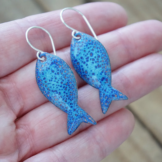 Blue Enamel Fish Earrings