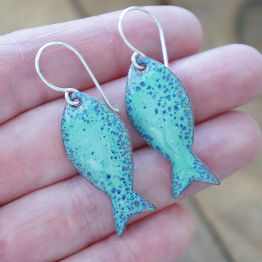 Green and Blue Enamel Fish Earrings