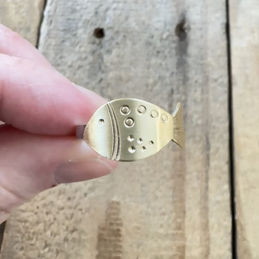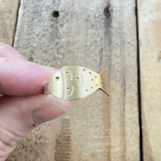 Size 7 3/4 Hand Stamped Brass Fish Ring
