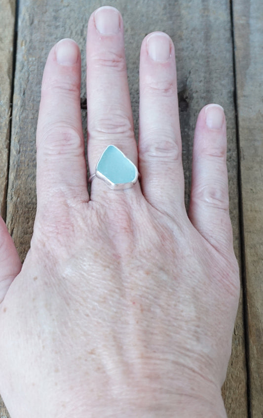 Size 7 Seafoam Green Sea Glass Stacking Ring