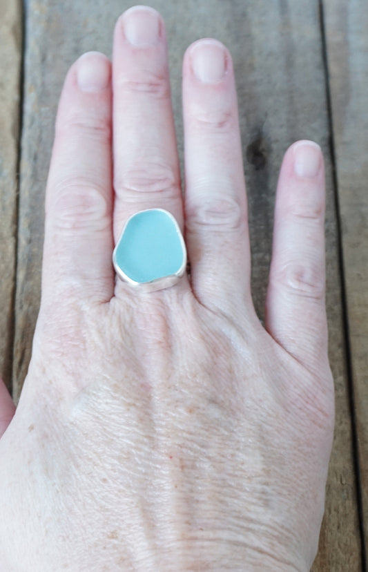 Size 9 Soft Aqua Blue Sea Glass Statement Ring