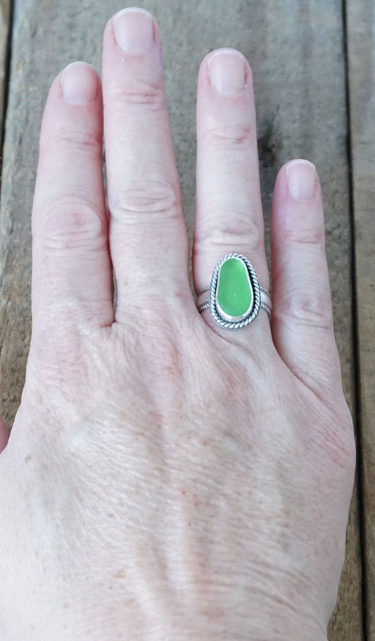 Size 8 Kelly Green Sea Glass Stacking Ring