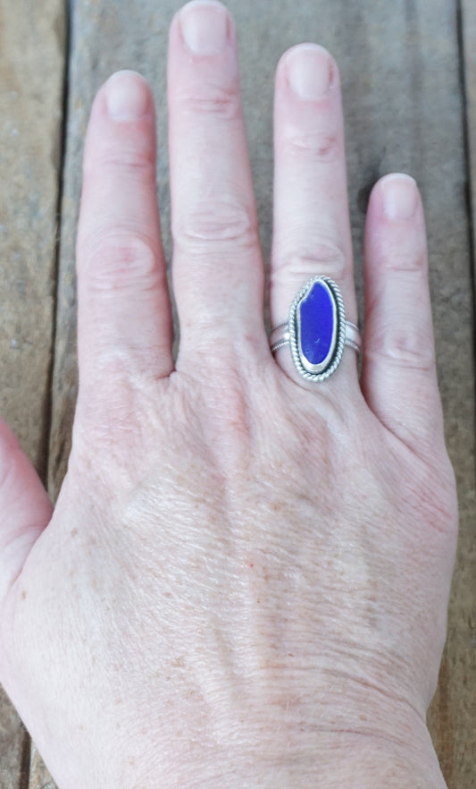 Size 7 Cobalt Blue Sea Glass Statement Ring
