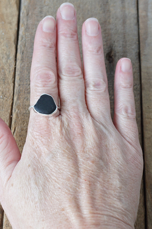 Size 9 1/2 Black Sea Glass Stacking Ring