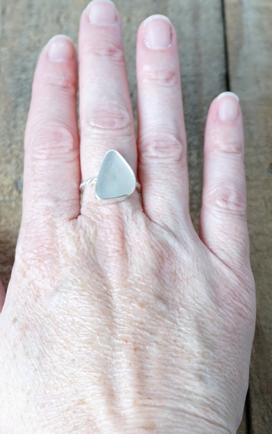 Size 7 1/2 Clear Sea Glass Statement Ring