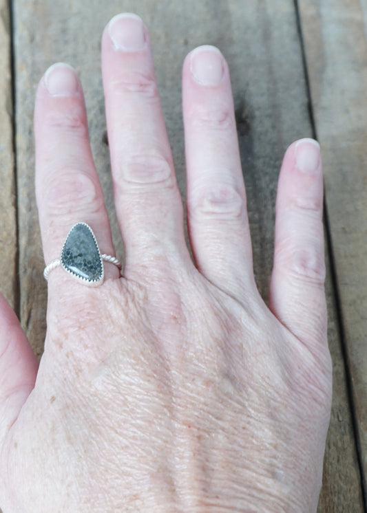 Size 8 3/4 Fossilized Black Coral Stacking Ring