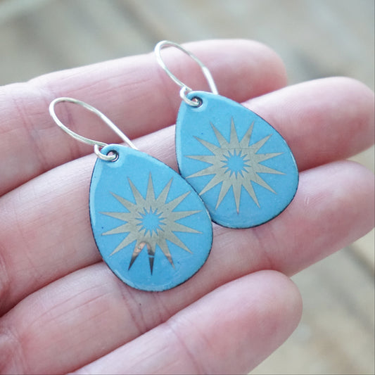 CLEARANCE Silver Snowflakes on Blue Enamel Teardrop Earrings