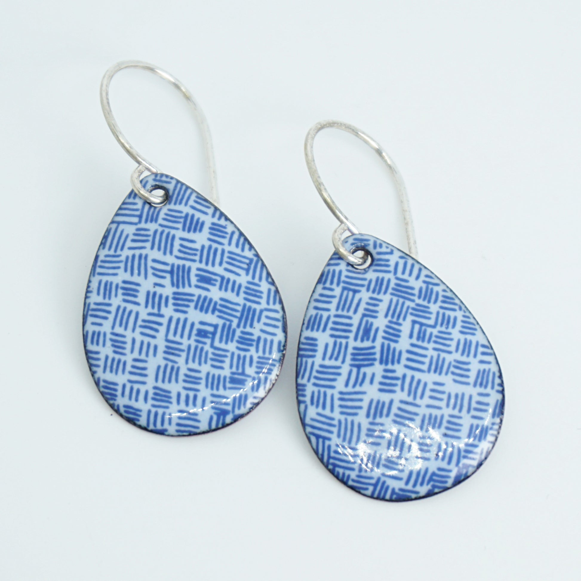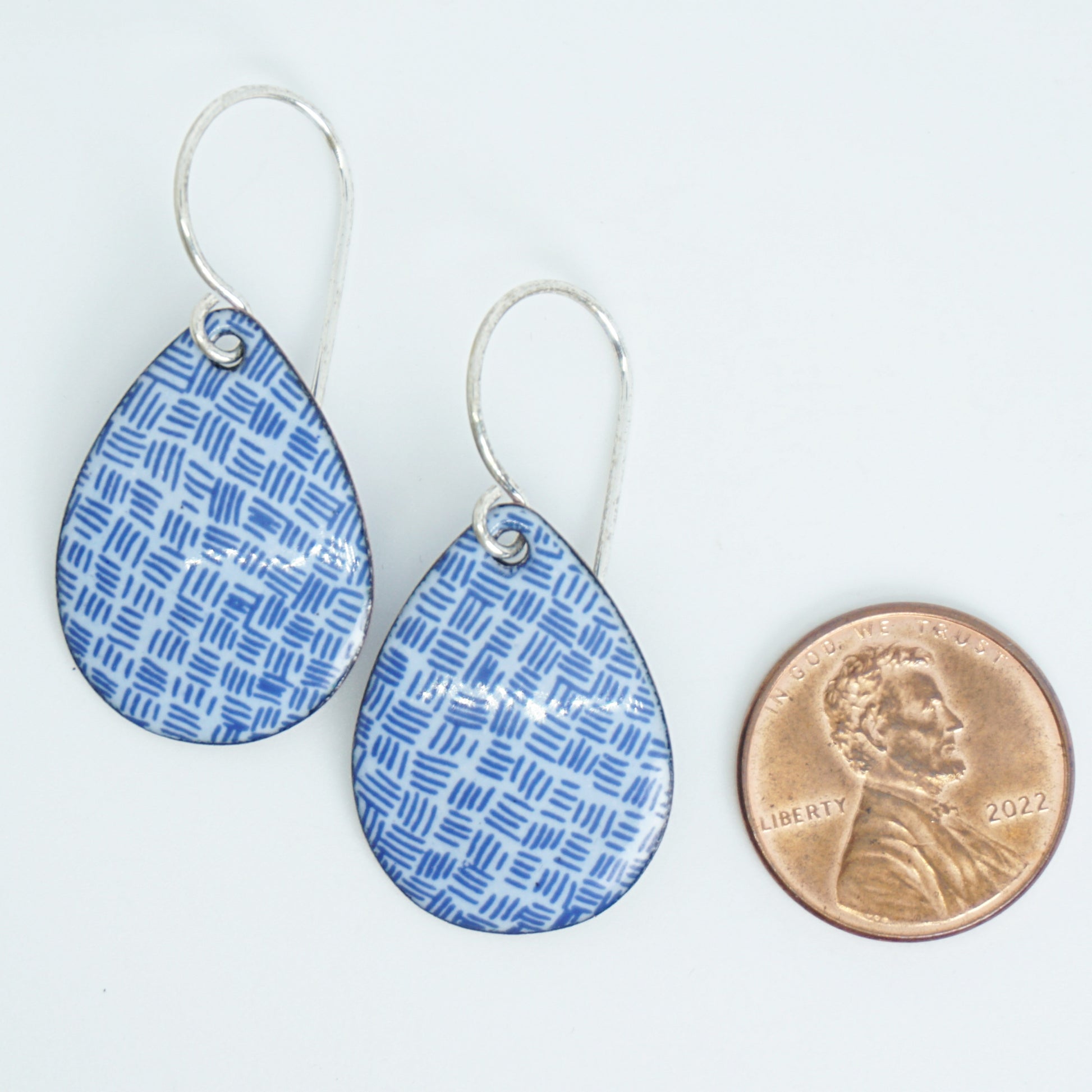 Blue Accents on Light Periwinkle Enamel Teardrop Earrings