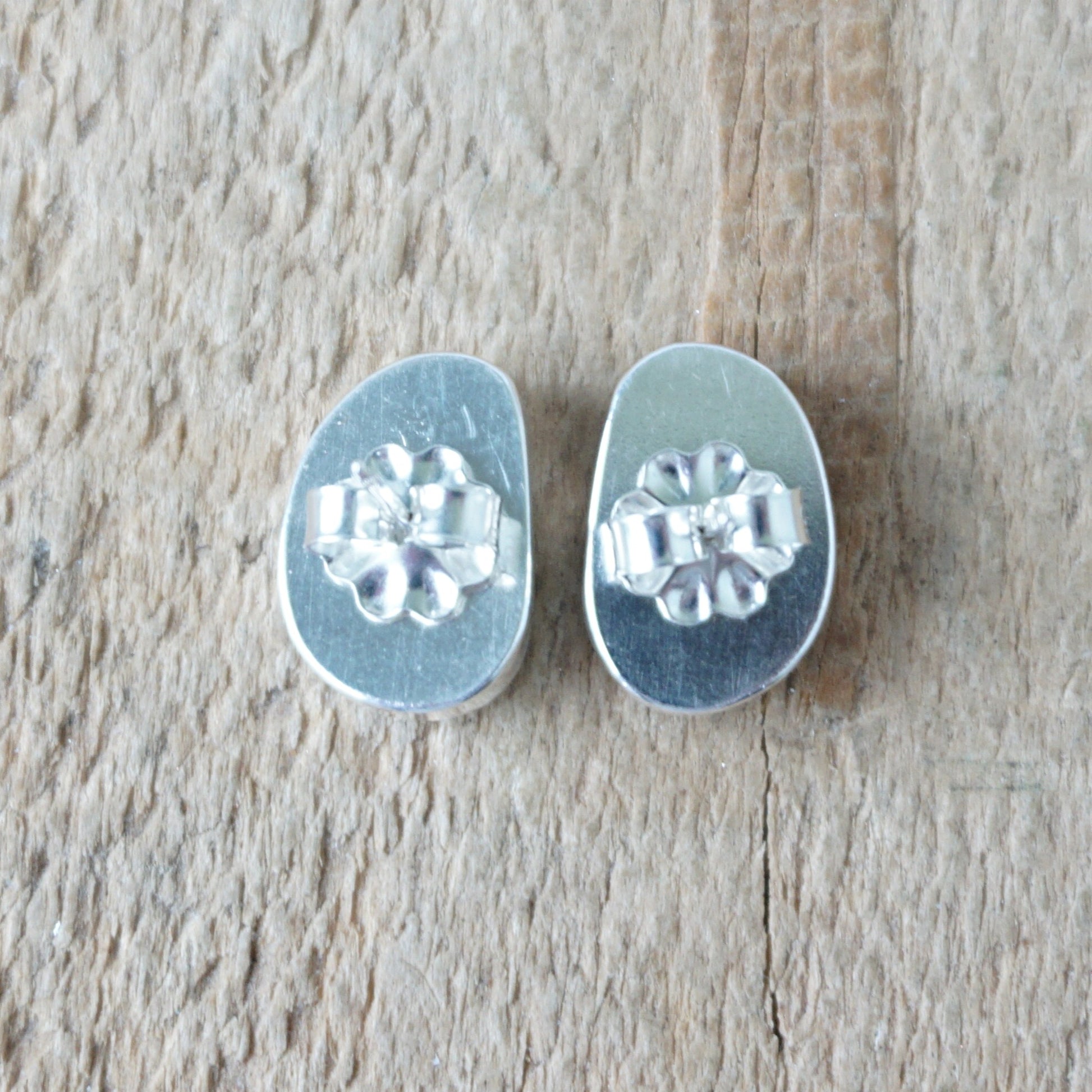 - The bezels are fine silver, while the backplates, posts, and ear nuts are sterling silver