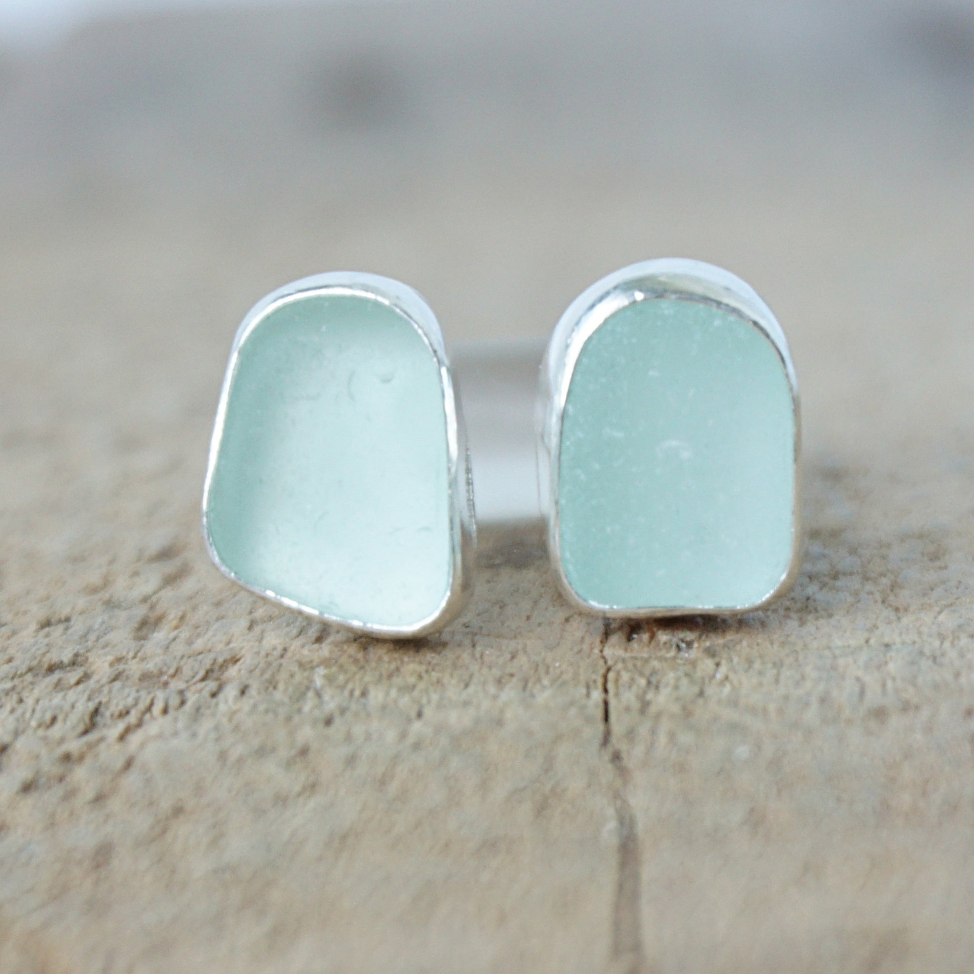 Seafoam green sea glass stud earrings. I chose a simple setting to accent the natural beauty of the sea glass.