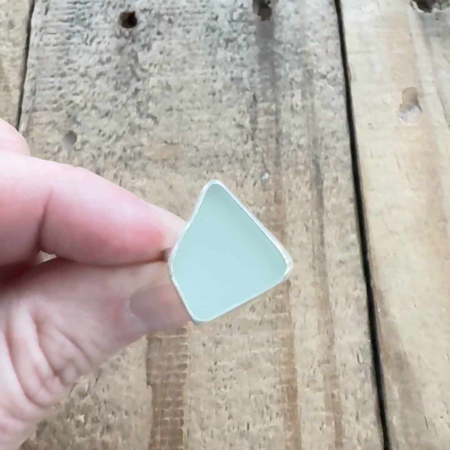 Size 5 1/4 soft aqua blue sea glass stacking ring. I chose a simple setting to accent the natural beauty of the sea glass. This piece of sea glass features some inclusions in the glass.