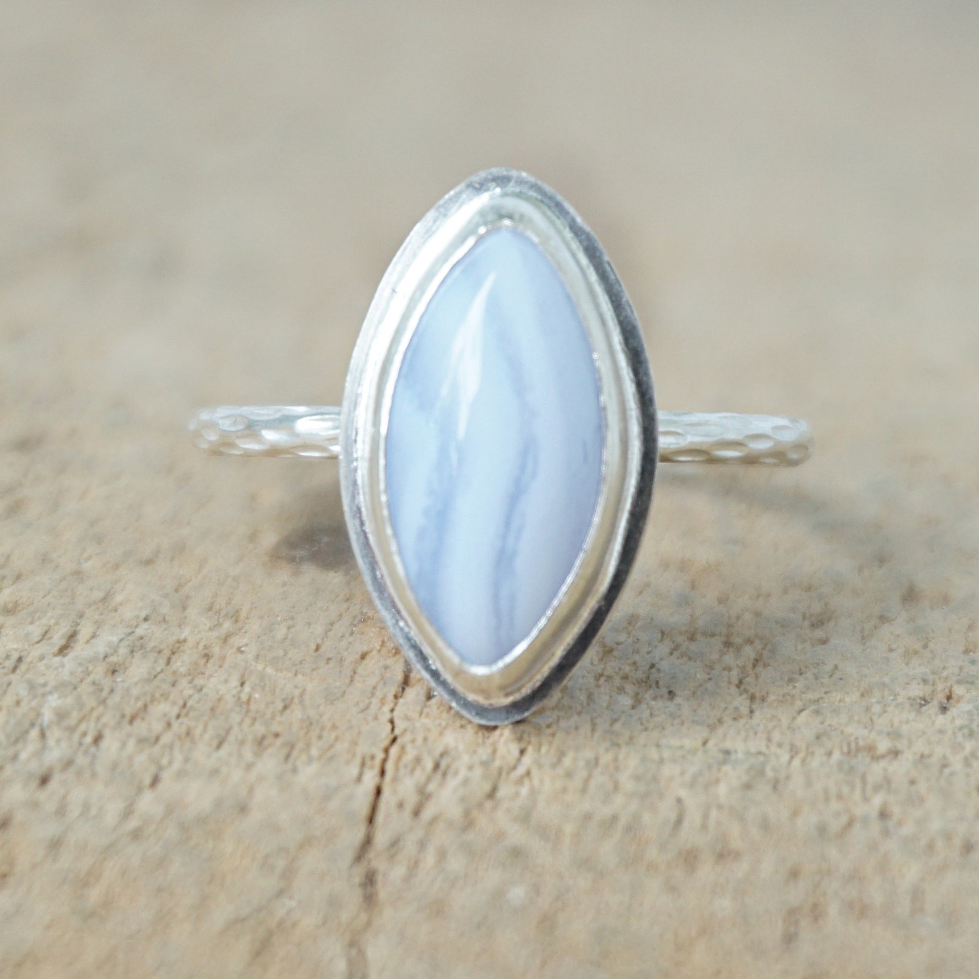 Size 7 blue lace agate stacking ring. I chose a simple setting to accent the natural beauty of the agate.