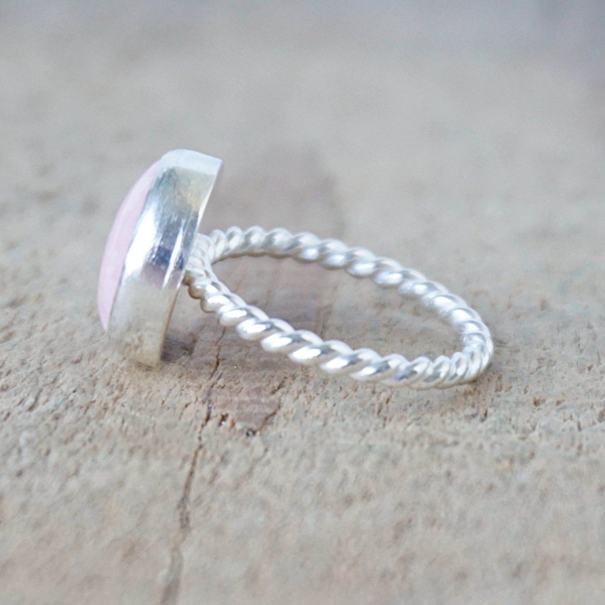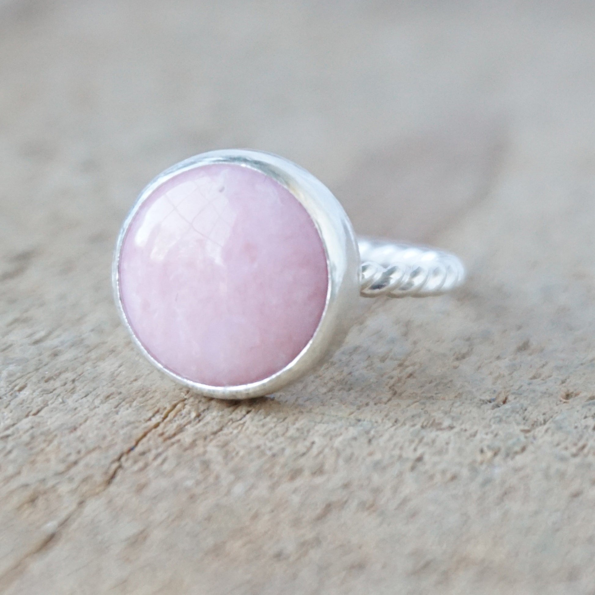 Size 6 1/2 pink Peruvian opal stacking ring. I chose a simple setting to accent the natural beauty of the pink opal.