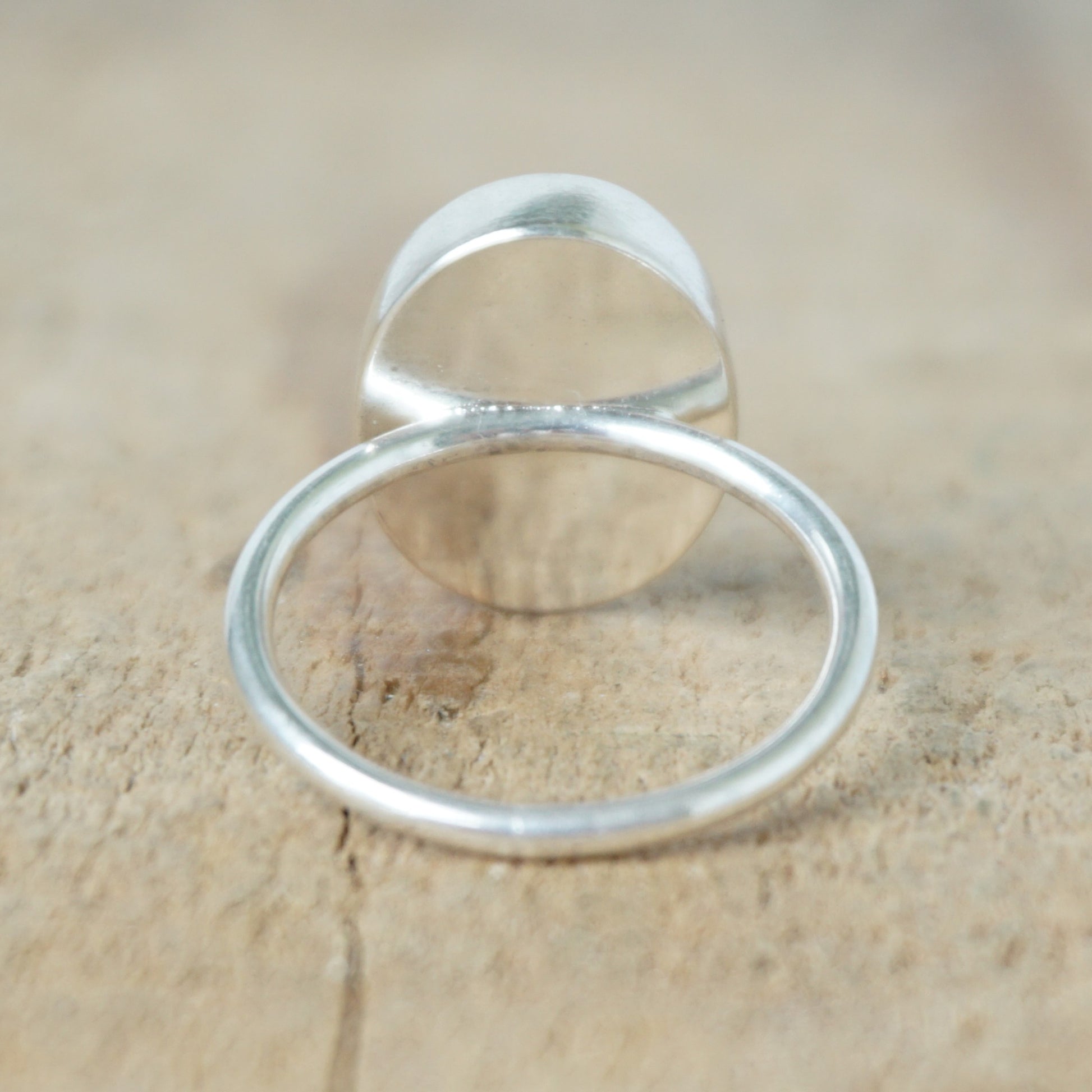 - The bezel is fine silver, while the backplate and ring shank are sterling silver