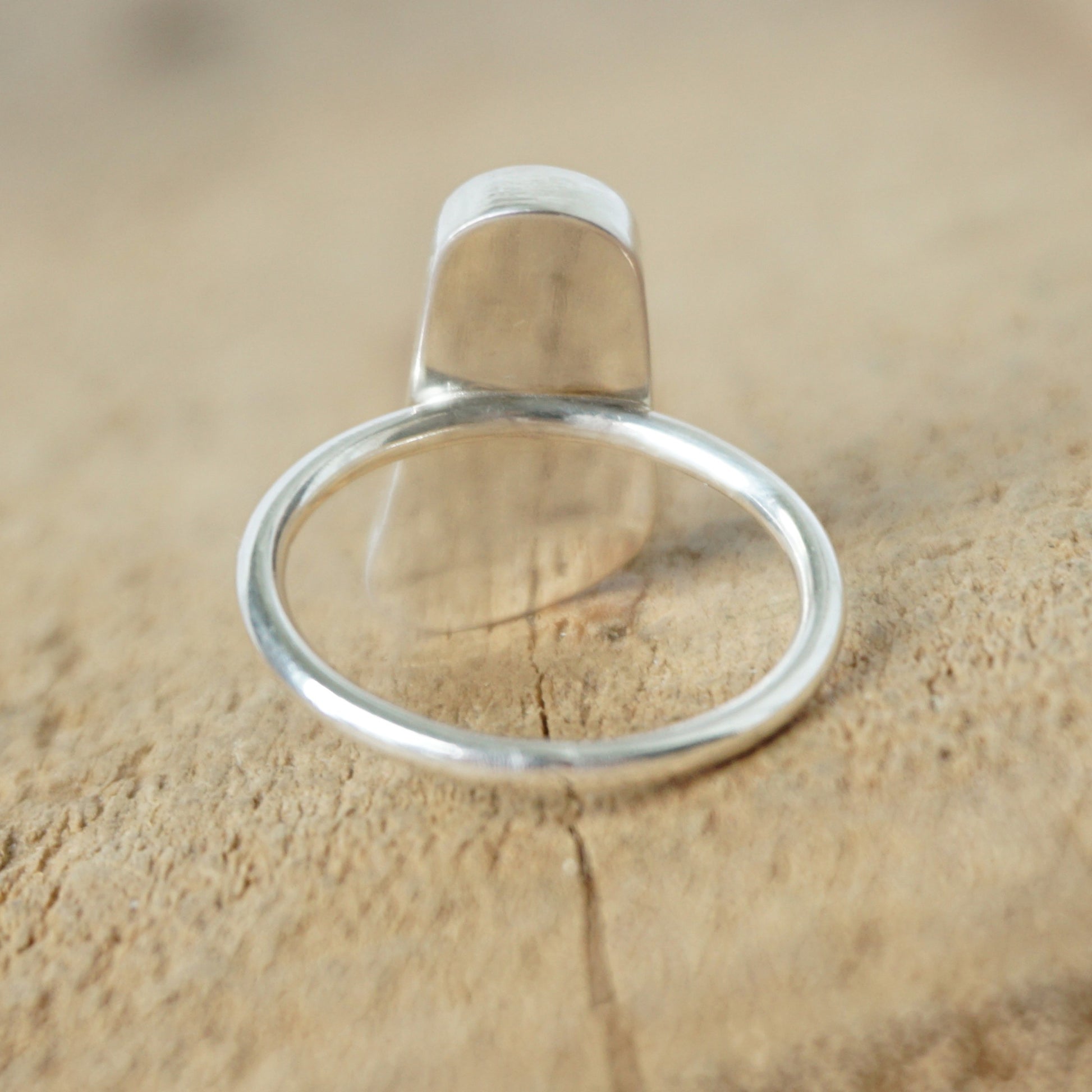 - The bezel is fine silver, while the backplate and ring shank are sterling silver