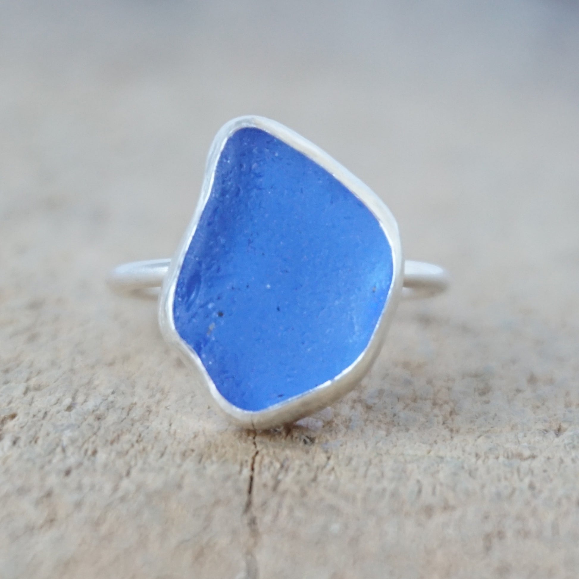 Size 7 1/2 cornflower blue sea glass stacking ring.