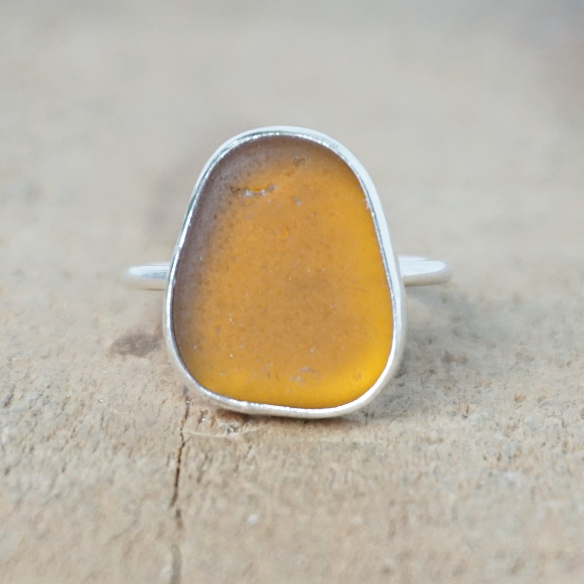 Size 7 3/4 amber brown sea glass stacking ring. I chose a simple setting to accent the natural beauty of the sea glass.