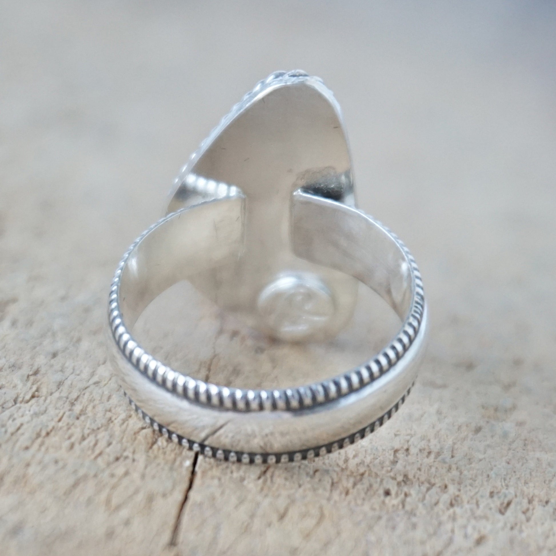 - The bezel is fine silver, while the backplate and ring shank are sterling silver