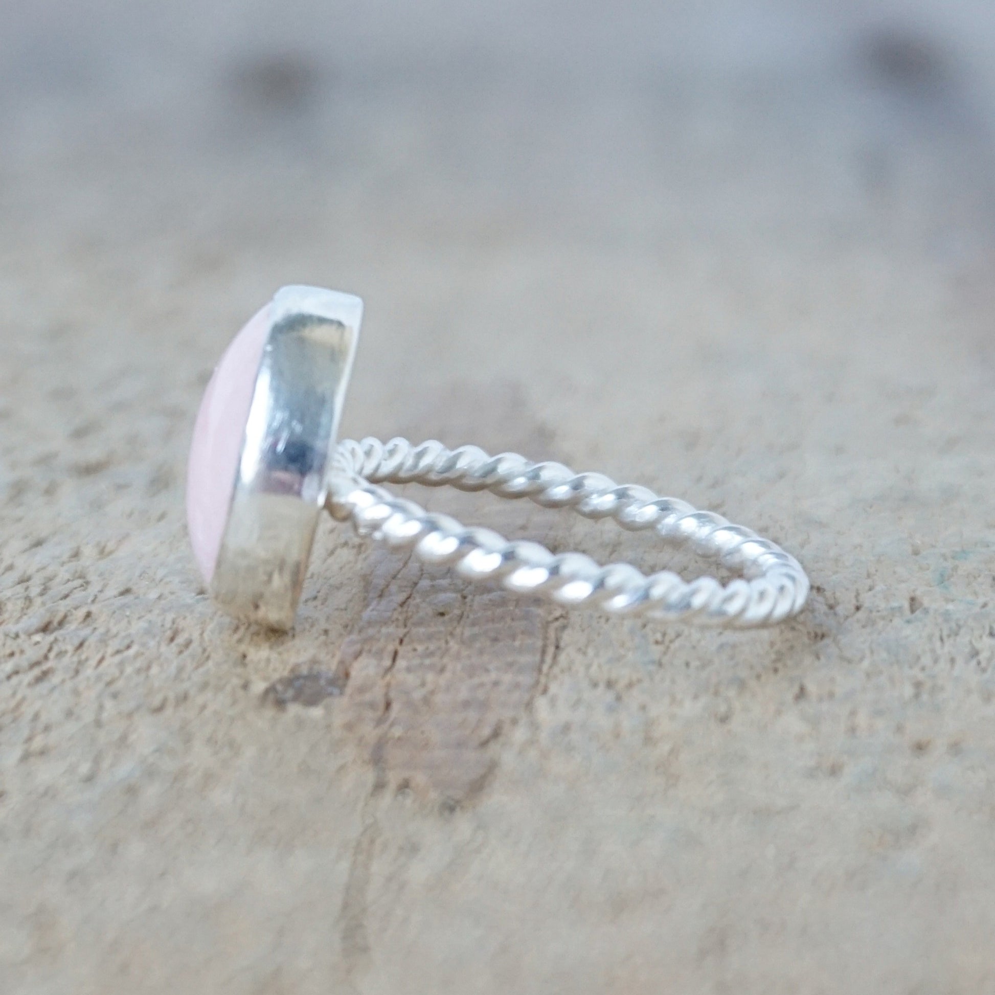 Size 7 pink Peruvian opal stacking ring. I chose a simple setting to accent the natural beauty of the pink opal.