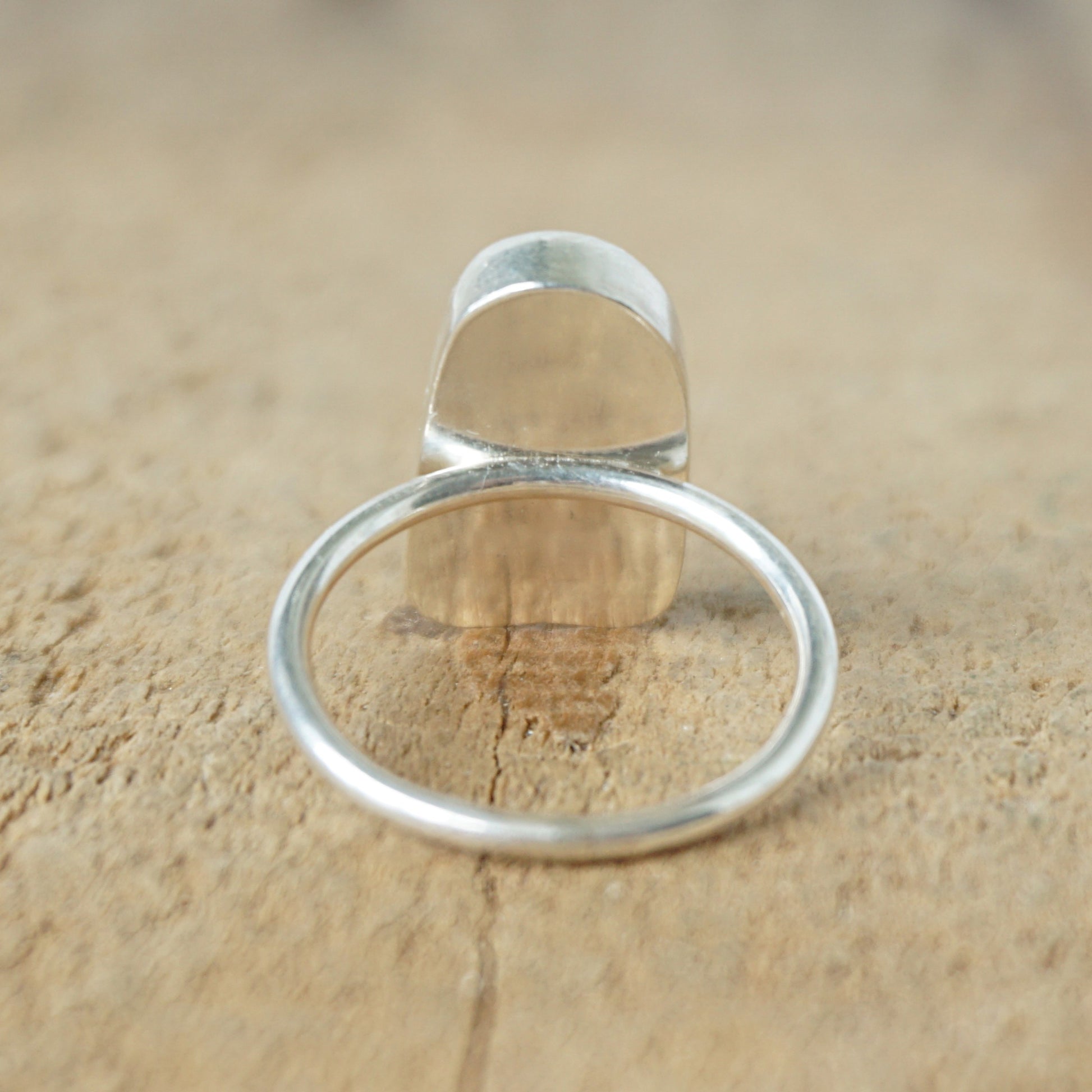 - The bezel is fine silver, while the backplate and ring shank are sterling silver