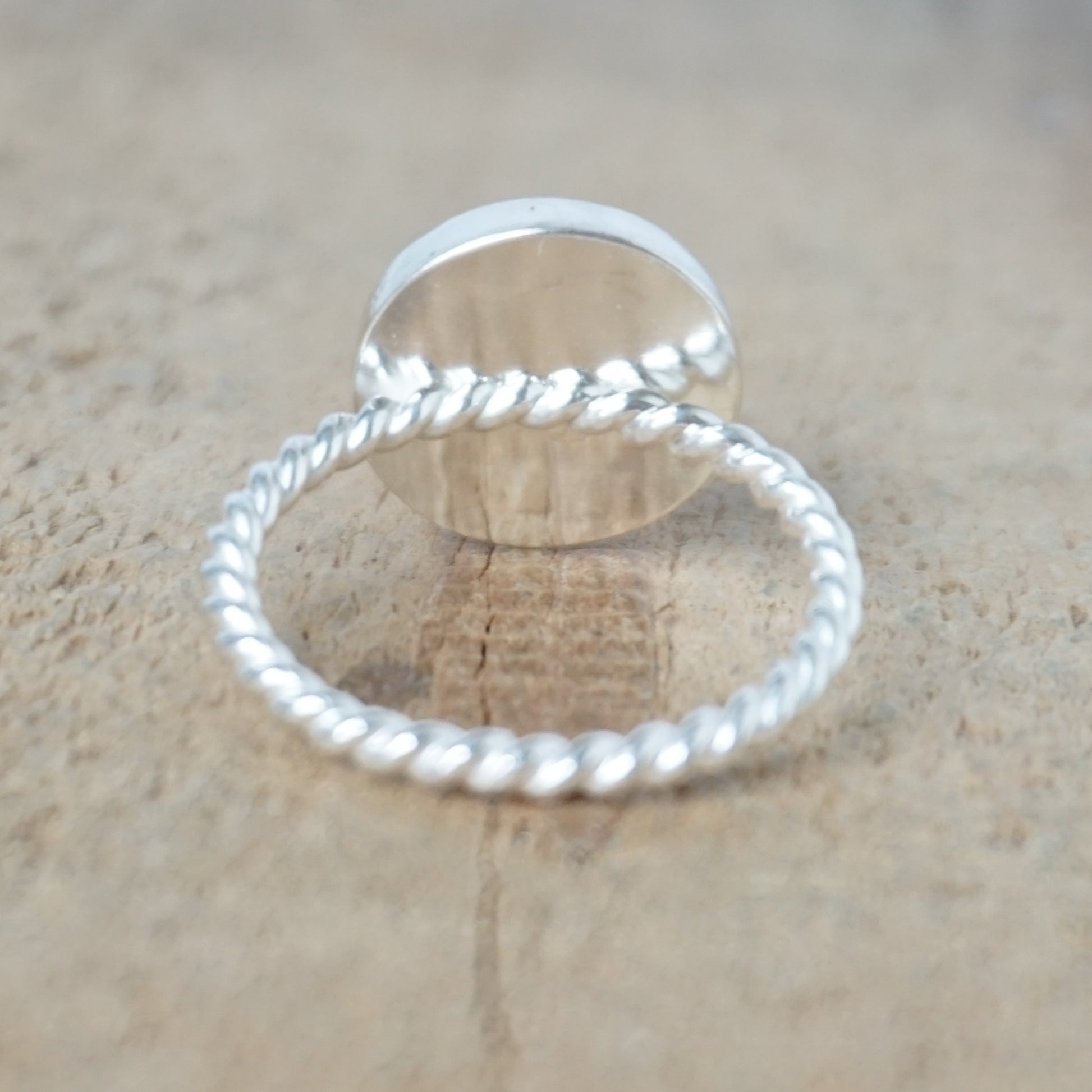 - The bezel is fine silver, while the backplate and ring shank are sterling silver