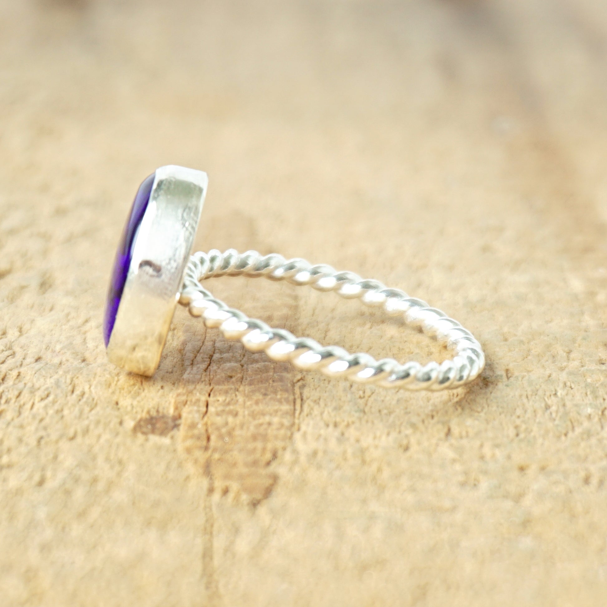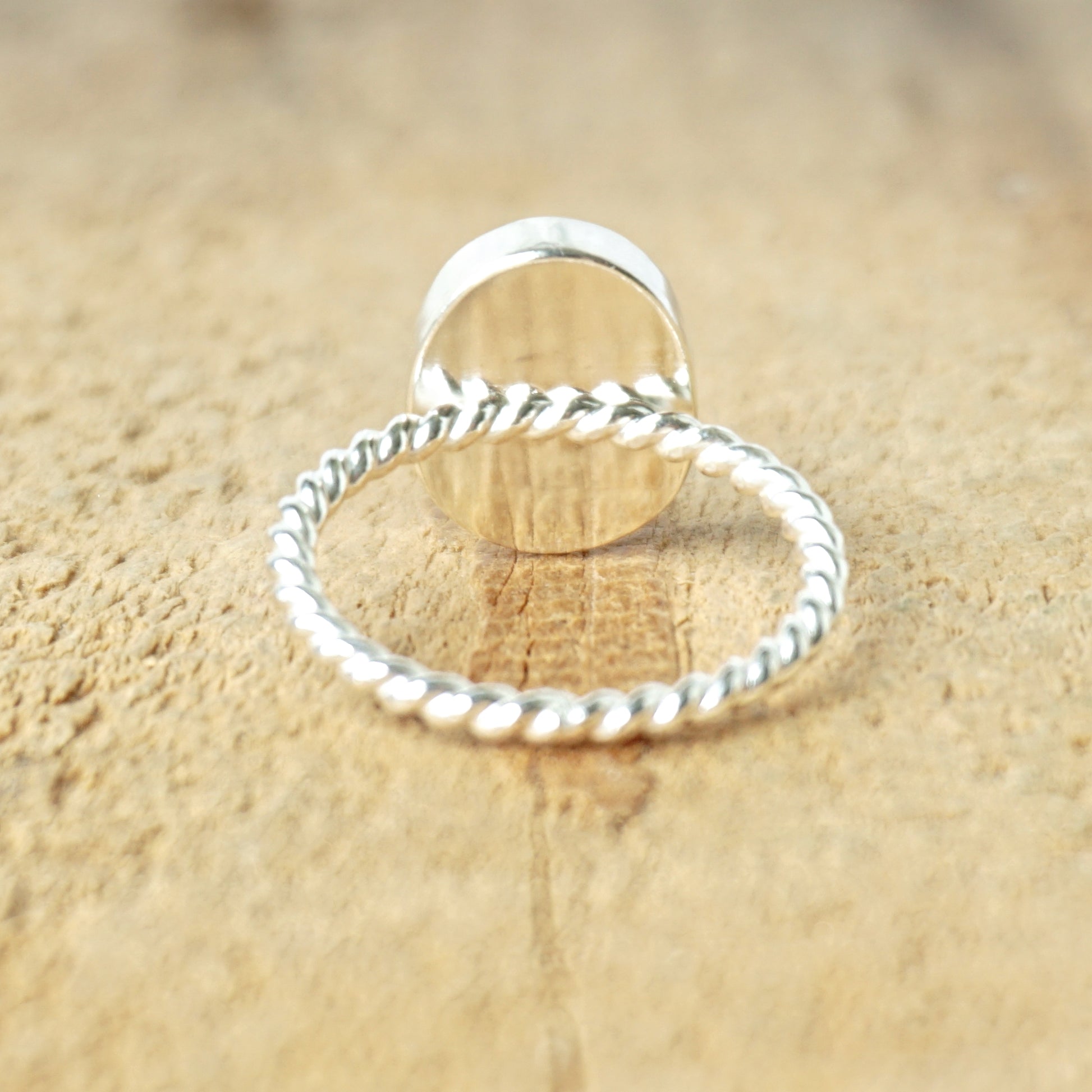 - The bezel is fine silver, while the backplate and ring shank are sterling silver