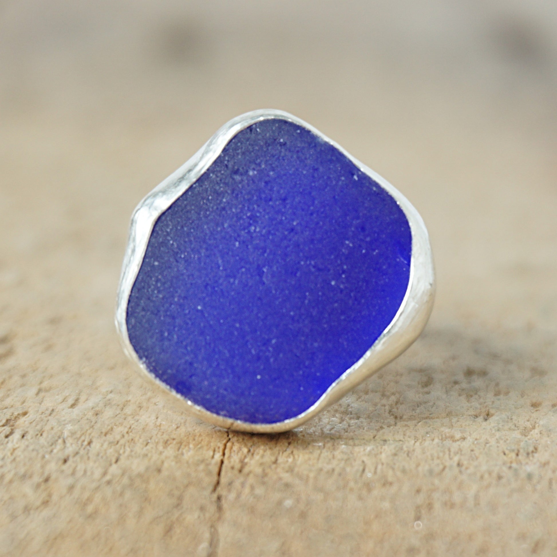 Size 8 Cobalt Blue Sea Glass Statement Ring