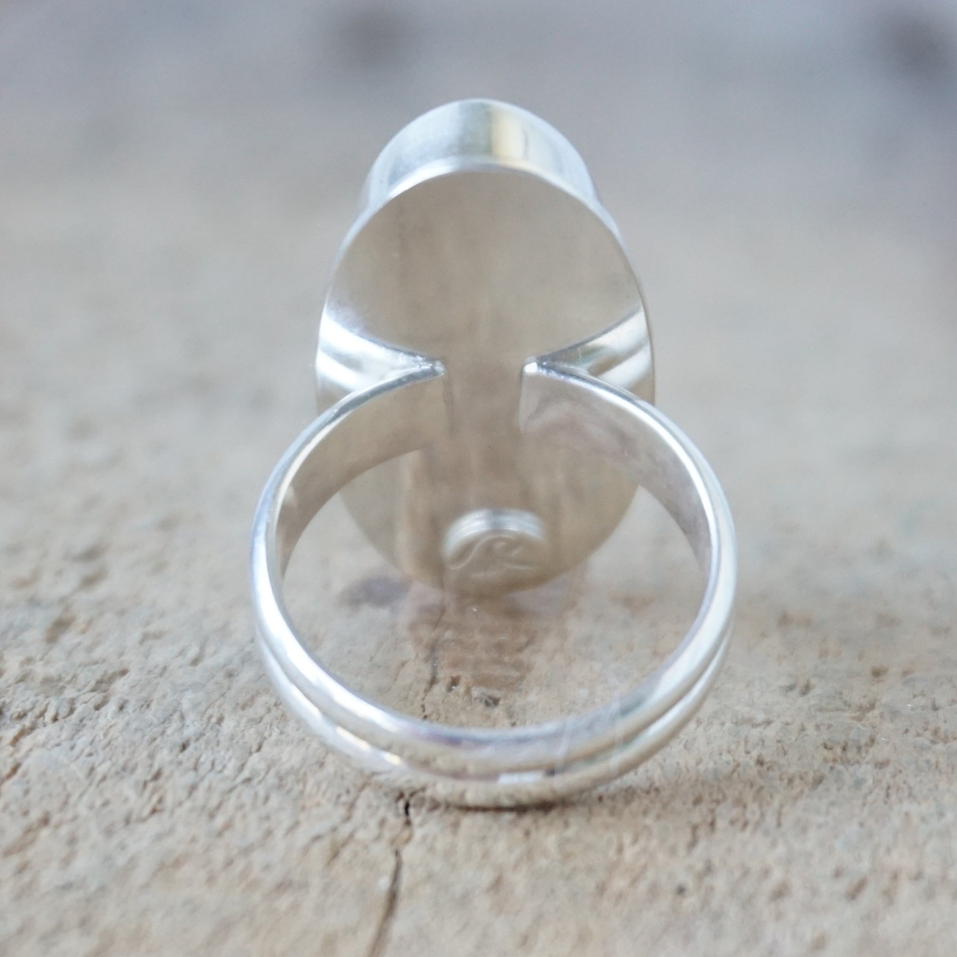- The bezel is fine silver, while the backplate and ring shank are sterling silver