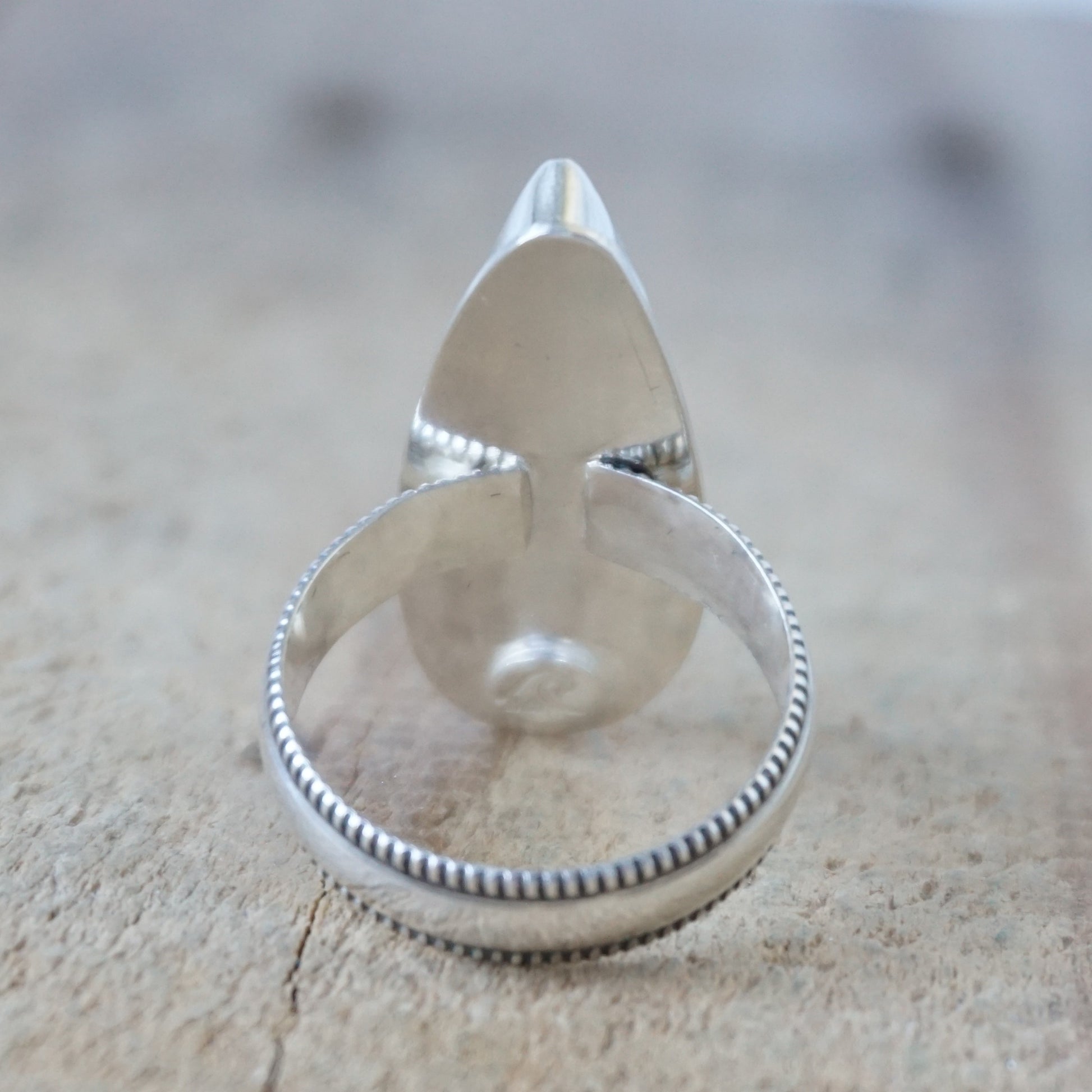 - The bezel is fine silver, while the backplate and ring shank are sterling silver