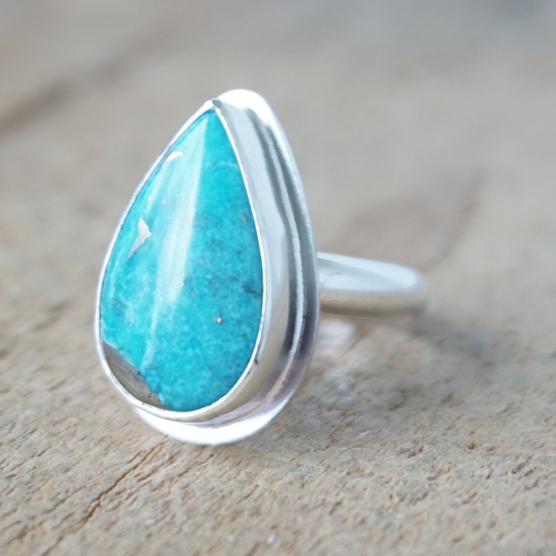 Size 9 1/4 Persian turquoise ring. This turquoise is a beautiful blue with pyrite inclusions.