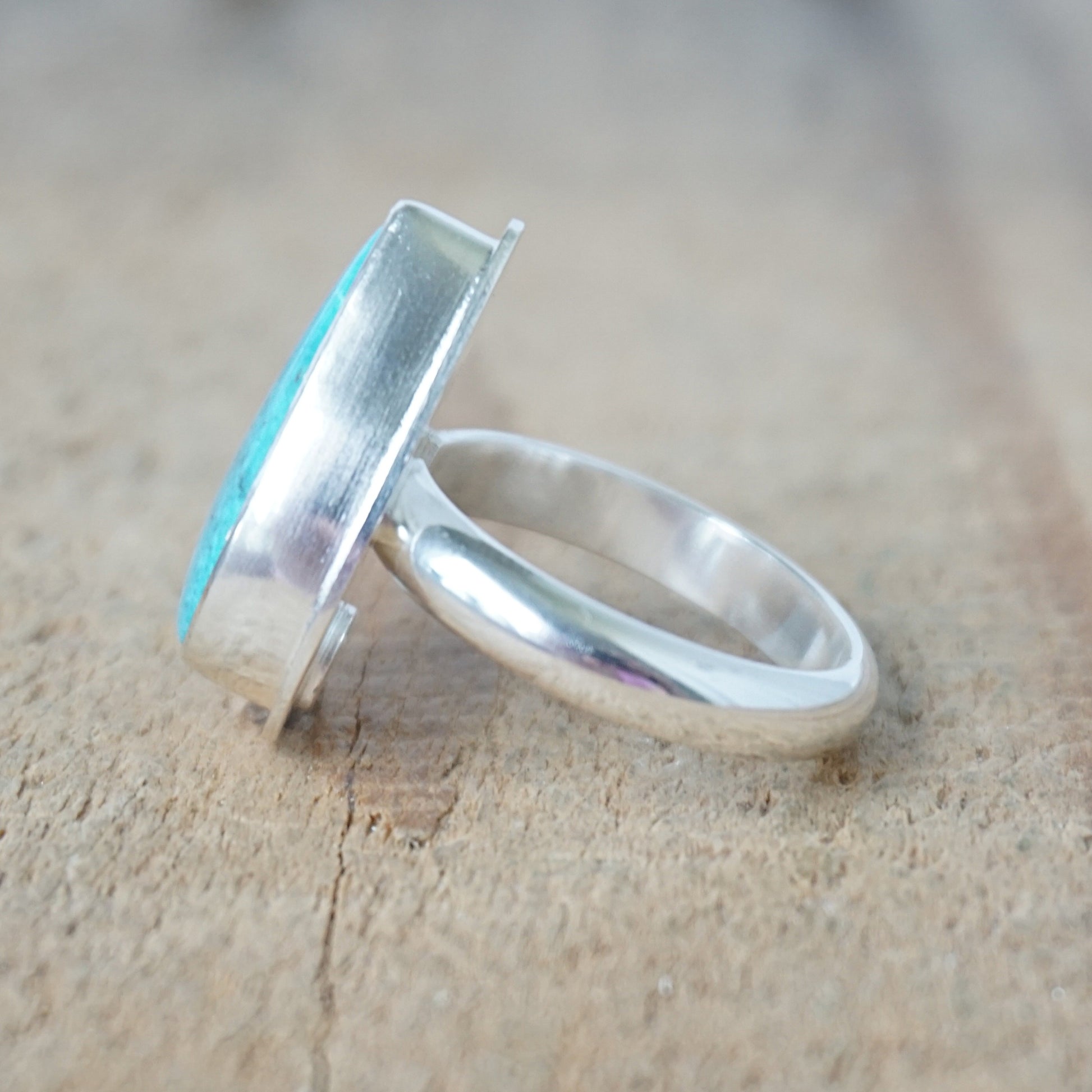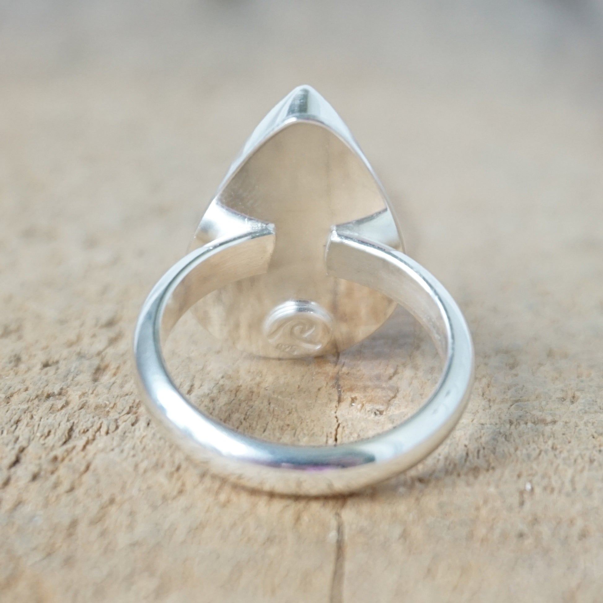 - The bezel is fine silver, while the backplate and ring shank are sterling silver