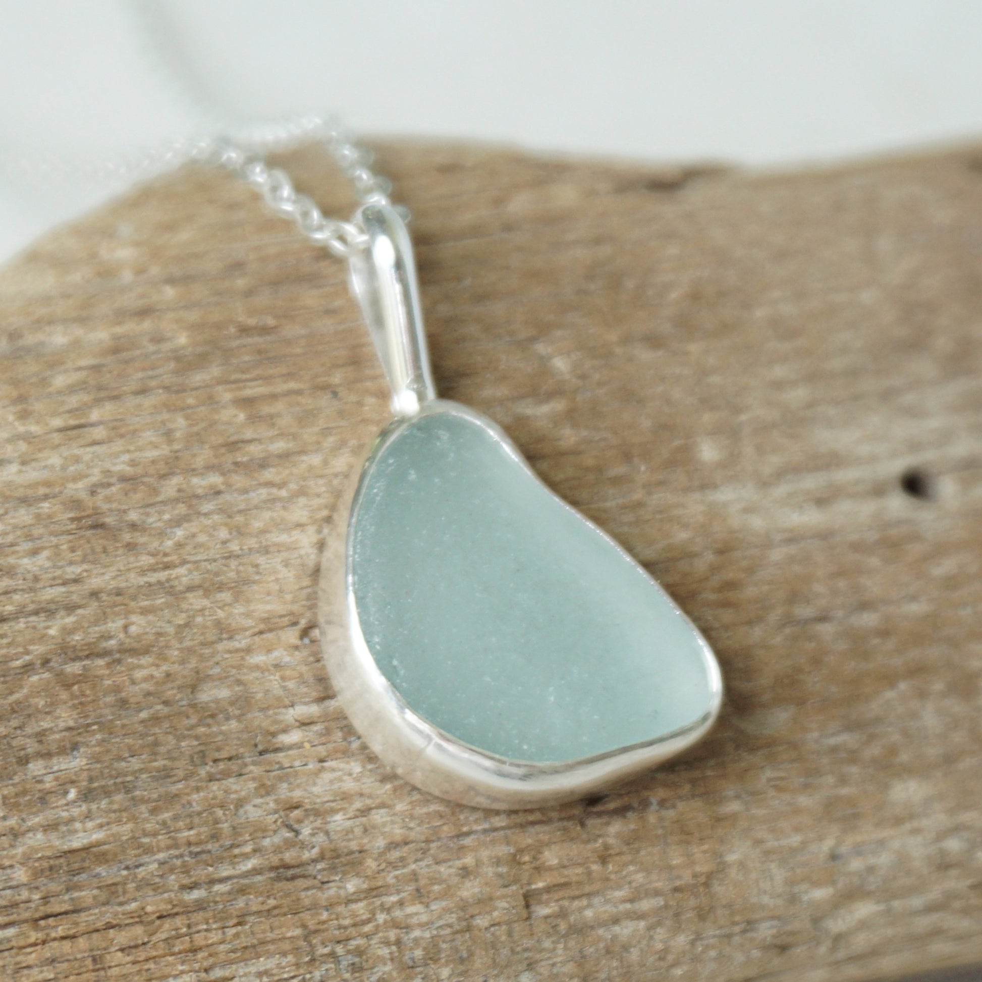 Soft Aqua Blue Sea Glass Pendant