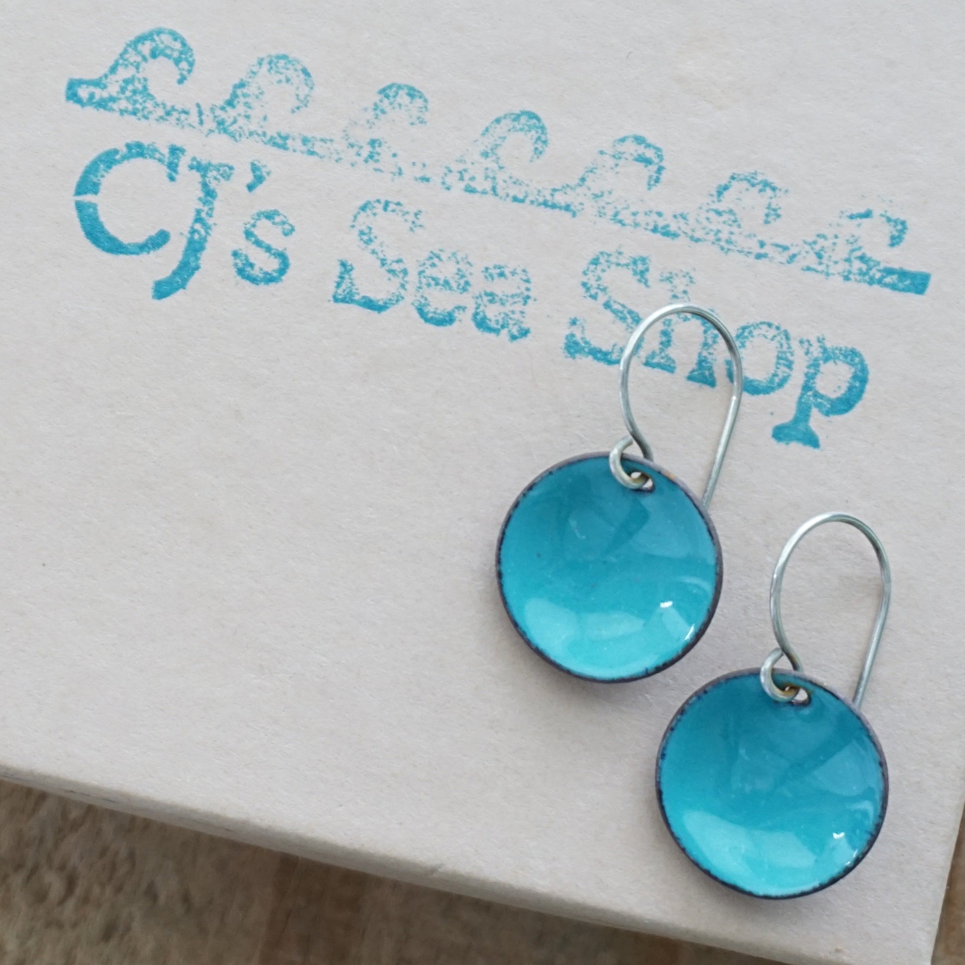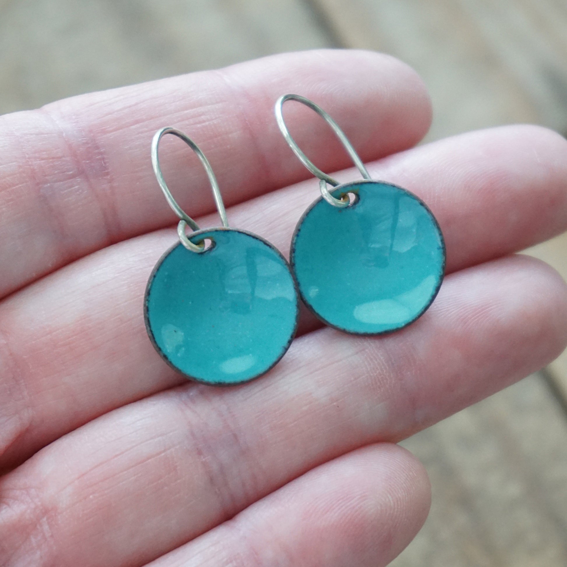 Teal Green Enamel Disc Earrings